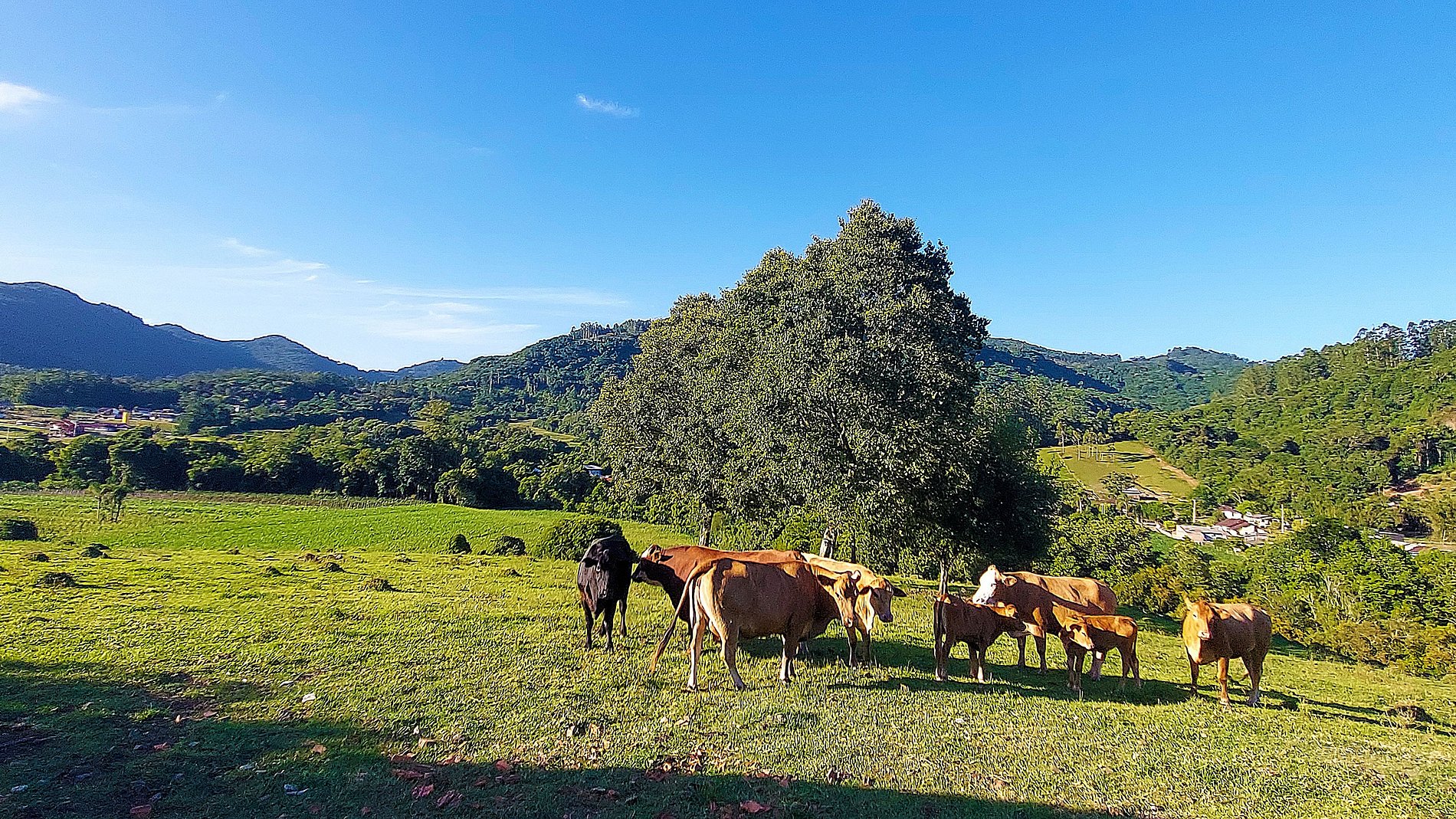 O chalé fica há uns 15minutos de Nova Petrópolis e uns 40min. de Gramado. Valeu muito a pena ficar aqui e se locomover pra lá. Aqui, é bem tranquilo, a paisagem é linda, tem mercado, farmácia, etc.. na cidade.