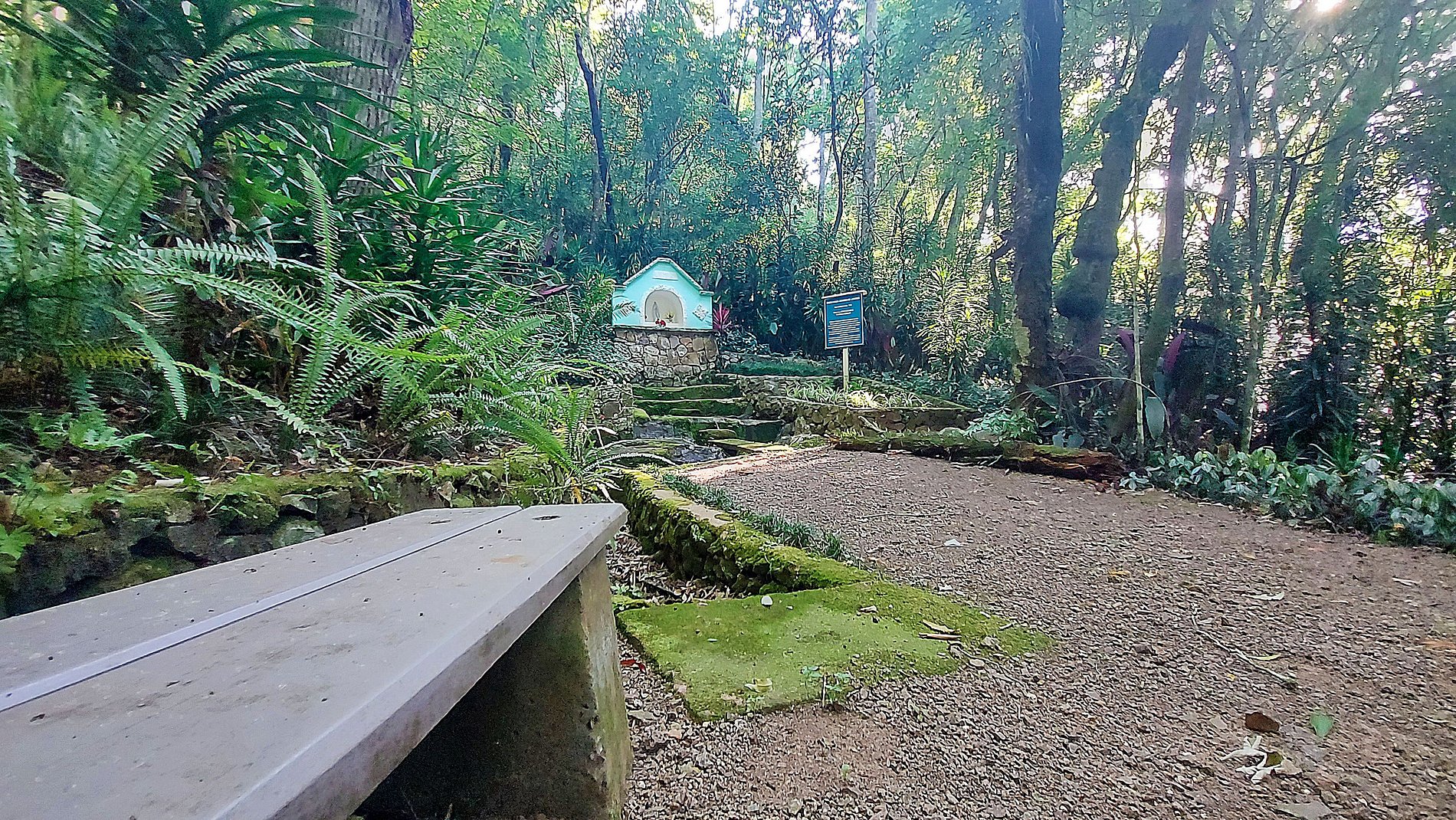 - Bancos para sentar e apreciar o jardim e a natureza;